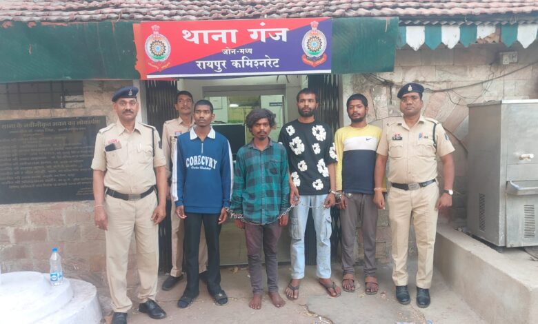 JANDAKHAL… रायपुर पुलिस कमिश्नरेट के अंतर्गत डीसीपी सेंट्रल जोन क्षेत्र में होली के बाद भी असामाजिक तत्वों के विरुद्ध सख्त अभियान लगातार जारी है। इसी कड़ी में थाना गंज पुलिस ने त्वरित कार्रवाई करते हुए सार्वजनिक स्थानों पर धारदार चाकू लेकर लोगों को डराने-धमकाने वाले चार आरोपियों को गिरफ्तार किया है।