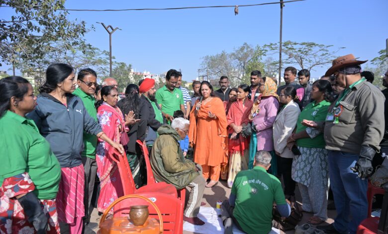 रायपुर – आज रायपुर नगर पालिक निगम की महापौर श्रीमती मीनल चौबे पर्यावरण प्रेमी एनजीओ ग्रीन आर्मी ऑफ रायपुर के अनुरोध पर एनजीओ द्वारा स्थानीय निवासियों और रायपुर नगर पालिक निगम, स्वास्थ्य विभाग के सहयोग से महाराजबन्द तालाब में लगातार चलाये जा रहे तालाब की श्रमदान से सफाई के महाभियान का निरीक्षण करने रायपुर नगर निगम जोन 5 जोन अध्यक्ष श्री वल्लभ अग्रवाल, जोन 6 अध्यक्ष श्री बद्री प्रसाद गुप्ता, पार्षद श्री प्रमोद कुमार साहू सहित रायपुर स्मार्ट सिटी लिमिटेड की सी ओ ओ सुश्री ऋचा चंद्राकर, जोन 6 जोन कमिश्नर श्री हितेन्द्र यादव, कार्यपालन अभियंता श्री अतुल चोपड़ा, श्री दिनेश सिंहा, सहायक अभियंता श्री अजय श्रीवास्तव, उप अभियंता सर्वश्री राहुल थोरानी, शुभम तिवारी, योगेन्द्र साहू जोन स्वास्थ्य अधिकारी सर्वश्री वीरेन्द्र चंद्राकर, संदीप वर्मा, श्री अदिव्य हजारी सहित अन्य सम्बंधित रायपुर नगर निगम और रायपुर स्मार्ट सिटी लिमिटेड के अधिकारियों, पूर्व पार्षद श्रीमती सरिता वर्मा, ग्रीन आर्मी के श्री अमिताभ दुबे सहित अन्य पदाधिकारियों और स्वयंसेवकों की उपस्थिति में किया.